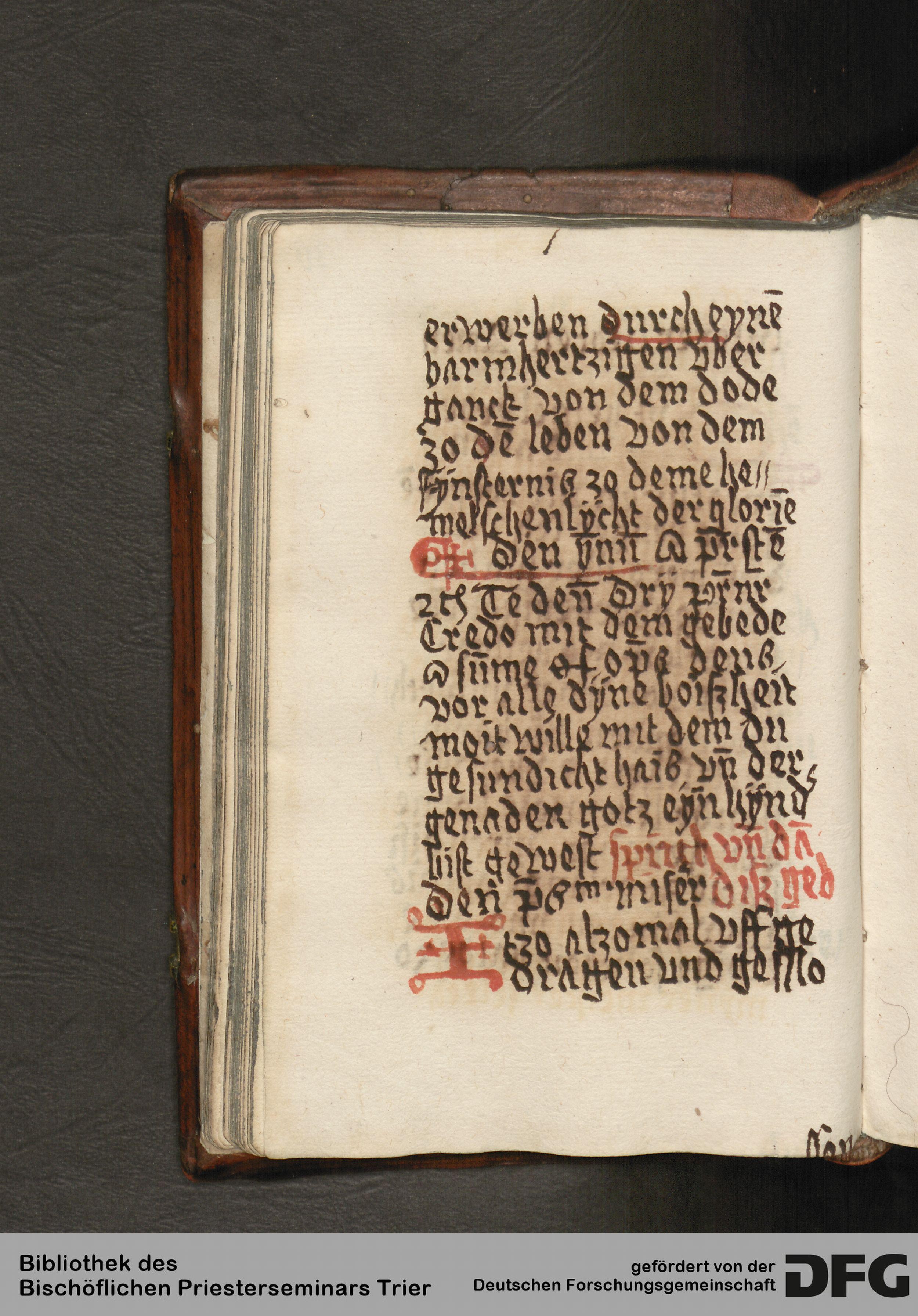 - TextGrid Repository (2017). Bibliothek des Bischöflichen Priesterseminars, Hs. 111: Sammelhandschrift. Inhalte. Bibliothek des Bischöflichen Priesterseminars Trier Hs. 111. Gebete in deutscher Sprache. Blatt 30v. Blatt 30v. Virtuelles Skriptorium St. Matthias. Bibliothek des Bischöflichen Priesterseminars Trier. https://hdl.handle.net/11378/0000-0006-FB29-2