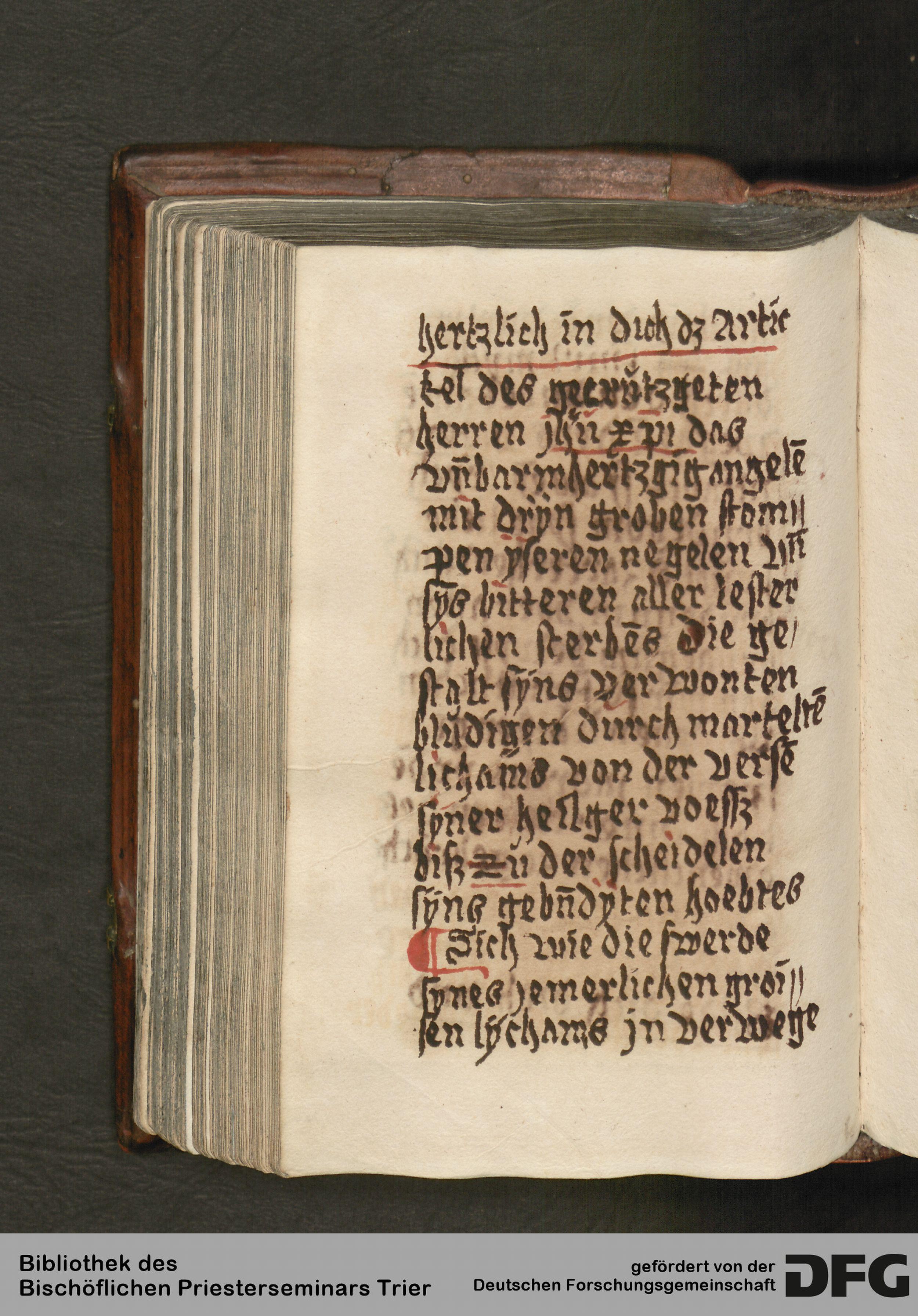 - TextGrid Repository (2017). Bibliothek des Bischöflichen Priesterseminars, Hs. 111: Sammelhandschrift. Inhalte. Bibliothek des Bischöflichen Priesterseminars Trier Hs. 111. Gebete in deutscher Sprache. Blatt 106v. Blatt 106v. Virtuelles Skriptorium St. Matthias. Bibliothek des Bischöflichen Priesterseminars Trier. https://hdl.handle.net/11378/0000-0006-FC59-B
