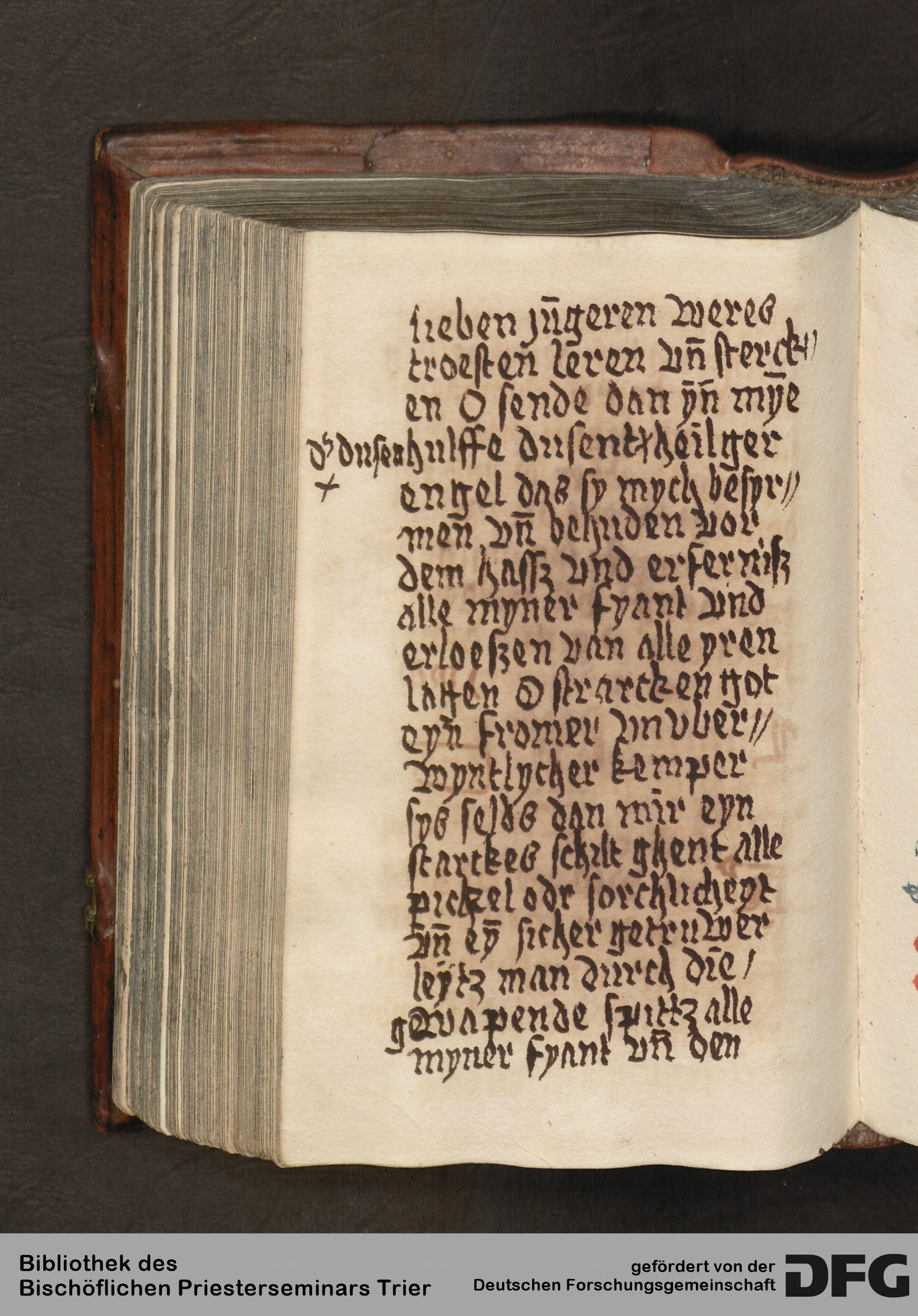- TextGrid Repository (2017). Bibliothek des Bischöflichen Priesterseminars, Hs. 111: Sammelhandschrift. Inhalte. Bibliothek des Bischöflichen Priesterseminars Trier Hs. 111. Gebete in deutscher Sprache. Blatt 131v. Blatt 131v. Virtuelles Skriptorium St. Matthias. Bibliothek des Bischöflichen Priesterseminars Trier. https://hdl.handle.net/11378/0000-0006-FCBD-A