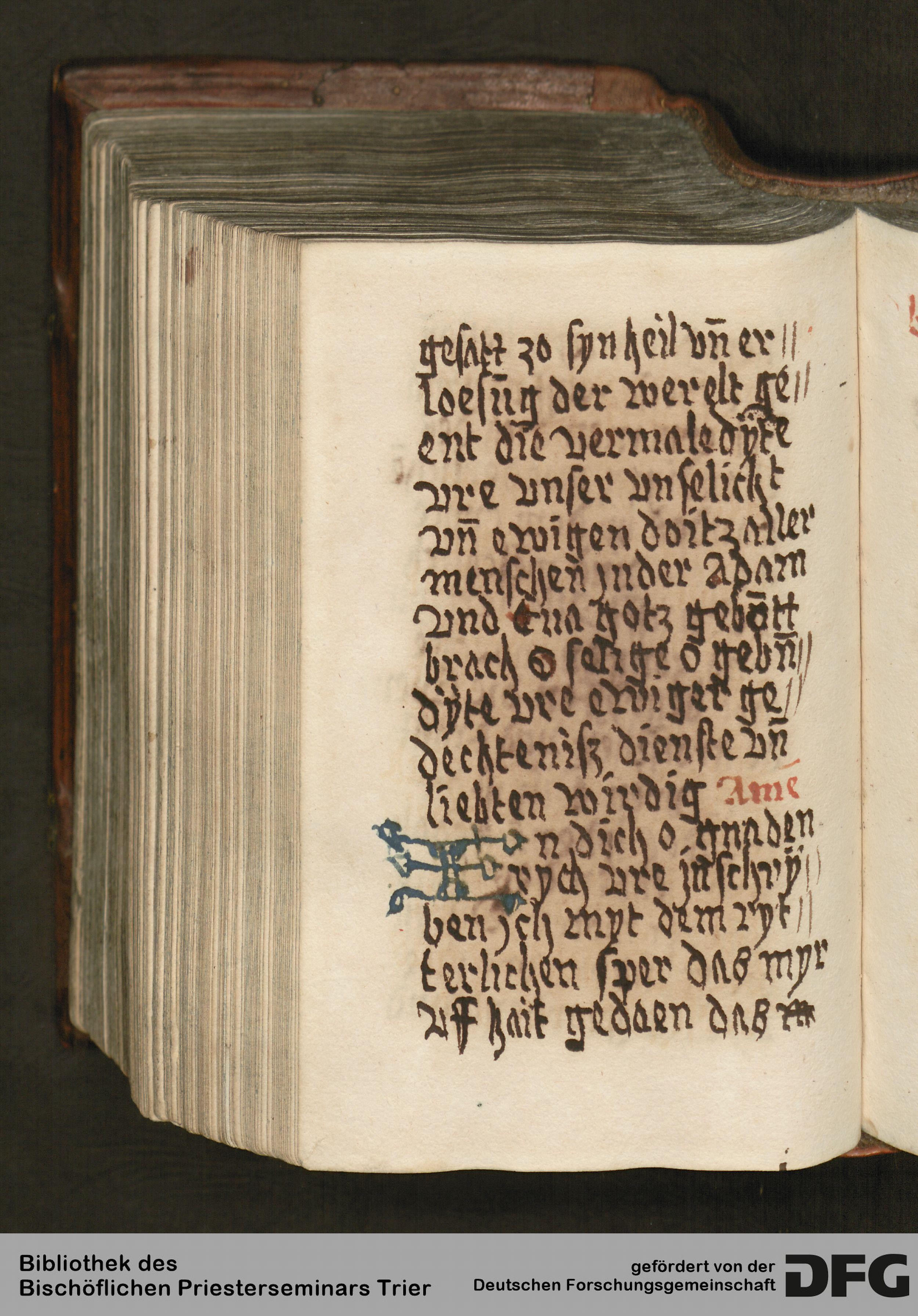 - TextGrid Repository (2017). Bibliothek des Bischöflichen Priesterseminars, Hs. 111: Sammelhandschrift. Inhalte. Bibliothek des Bischöflichen Priesterseminars Trier Hs. 111. Gebete in deutscher Sprache. Blatt 277v. Blatt 277v. Virtuelles Skriptorium St. Matthias. Bibliothek des Bischöflichen Priesterseminars Trier. https://hdl.handle.net/11378/0000-0006-FF05-6