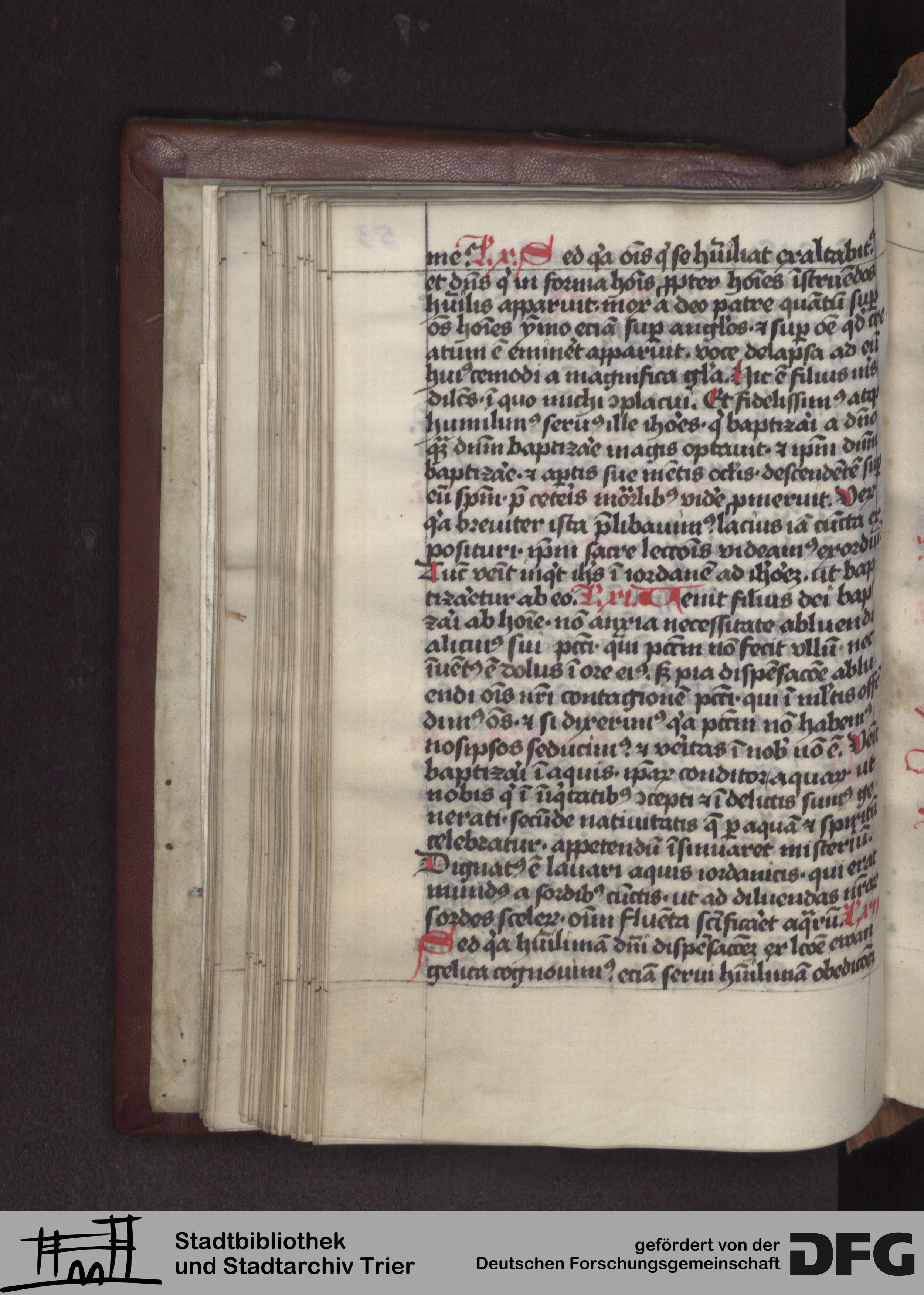 - TextGrid Repository (2017). Stadtbibliothek und Stadtarchiv Trier, Hs. 380/1049 8°: Sammelhandschrift. Inhalte. Stadtbibliothek und Stadtarchiv Trier Hs. 380/1049 8°. Brevier, Winterteil. Lektionen. Blatt 53v. Blatt 53v. Virtuelles Skriptorium St. Matthias. Stadtbibliothek und Stadtarchiv Trier. https://hdl.handle.net/11378/0000-0008-AD5A-1