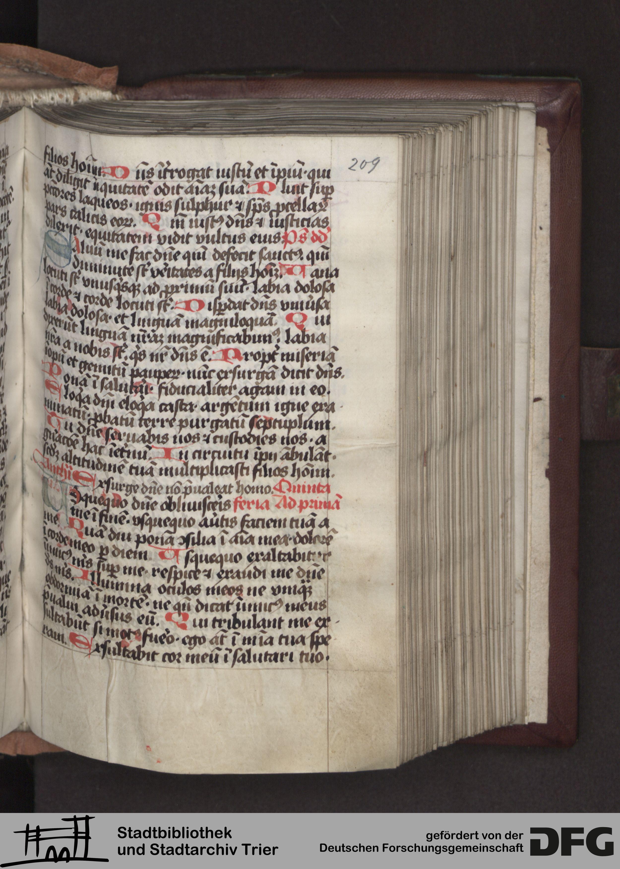 - TextGrid Repository (2017). Stadtbibliothek und Stadtarchiv Trier, Hs. 380/1049 8°: Sammelhandschrift. Inhalte. Stadtbibliothek und Stadtarchiv Trier Hs. 380/1049 8°. Brevier, Winterteil. Psalterium mit Zubehör. Blatt 209r. Blatt 209r. Virtuelles Skriptorium St. Matthias. Stadtbibliothek und Stadtarchiv Trier. https://hdl.handle.net/11378/0000-0008-AFC8-2