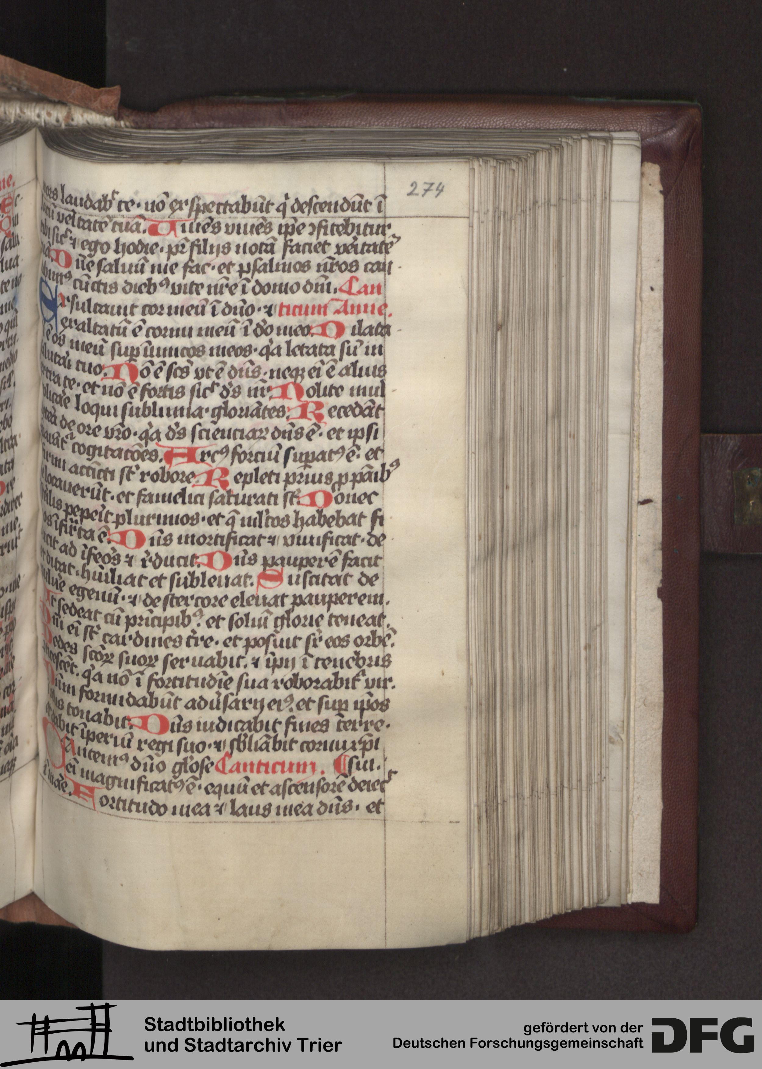 TextGrid Repository (2017). Stadtbibliothek und Stadtarchiv Trier, Hs. 380/1049 8°: Sammelhandschrift. Inhalte. Stadtbibliothek und Stadtarchiv Trier Hs. 380/1049 8°. Brevier, Winterteil. Psalterium mit Zubehör. Blatt 274r. Blatt 274r. Virtuelles Skriptorium St. Matthias. Stadtbibliothek und Stadtarchiv Trier. https://hdl.handle.net/11378/0000-0008-B0CC-B
