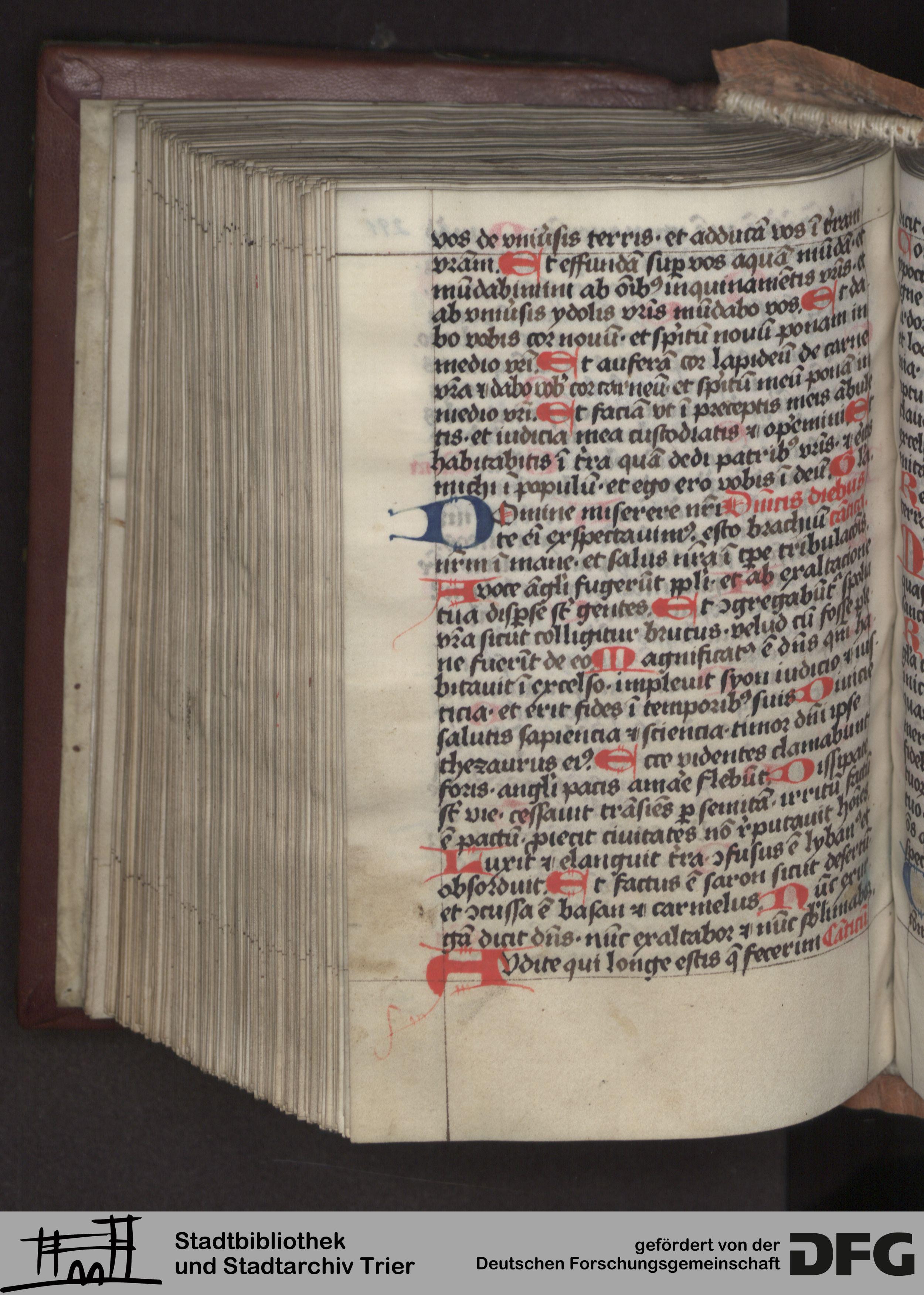 - TextGrid Repository (2017). Stadtbibliothek und Stadtarchiv Trier, Hs. 380/1049 8°: Sammelhandschrift. Inhalte. Stadtbibliothek und Stadtarchiv Trier Hs. 380/1049 8°. Brevier, Winterteil. Psalterium mit Zubehör. Blatt 291v. Blatt 291v. Virtuelles Skriptorium St. Matthias. Stadtbibliothek und Stadtarchiv Trier. https://hdl.handle.net/11378/0000-0008-B112-B
