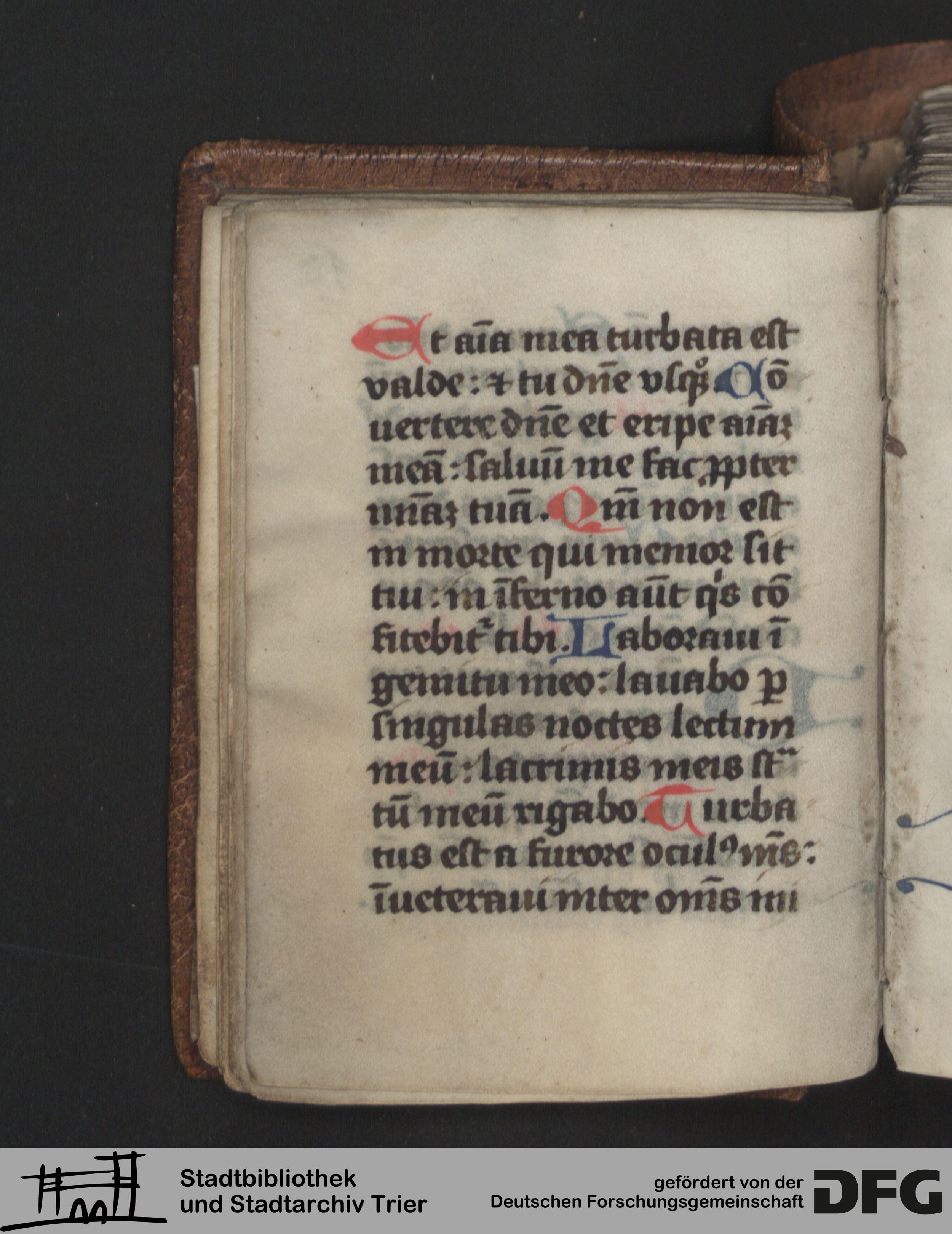 - TextGrid Repository (2017). Stadtbibliothek und Stadtarchiv Trier, Hs. 447/1612 8°: Sammelhandschrift. Inhalte. Stadtbibliothek und Stadtarchiv Trier Hs. 447/1612 8°. Psalmi ad primam. Blatt 16v. Blatt 16v. Virtuelles Skriptorium St. Matthias. Stadtbibliothek und Stadtarchiv Trier. https://hdl.handle.net/11378/0000-0008-DDA7-3