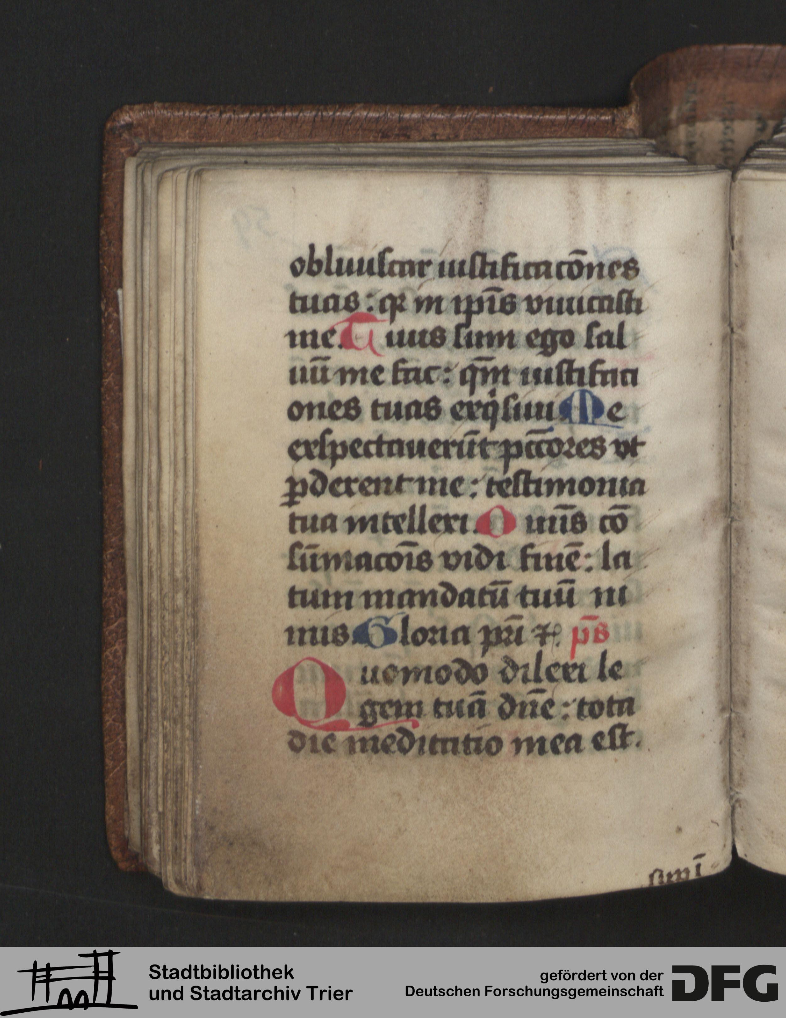 - TextGrid Repository (2017). Stadtbibliothek und Stadtarchiv Trier, Hs. 447/1612 8°: Sammelhandschrift. Inhalte. Stadtbibliothek und Stadtarchiv Trier Hs. 447/1612 8°. Psalmi ad horas III. VI. IX. dominicis et feriatis diebus. Blatt 59v. Blatt 59v. Virtuelles Skriptorium St. Matthias. Stadtbibliothek und Stadtarchiv Trier. https://hdl.handle.net/11378/0000-0008-DE53-1