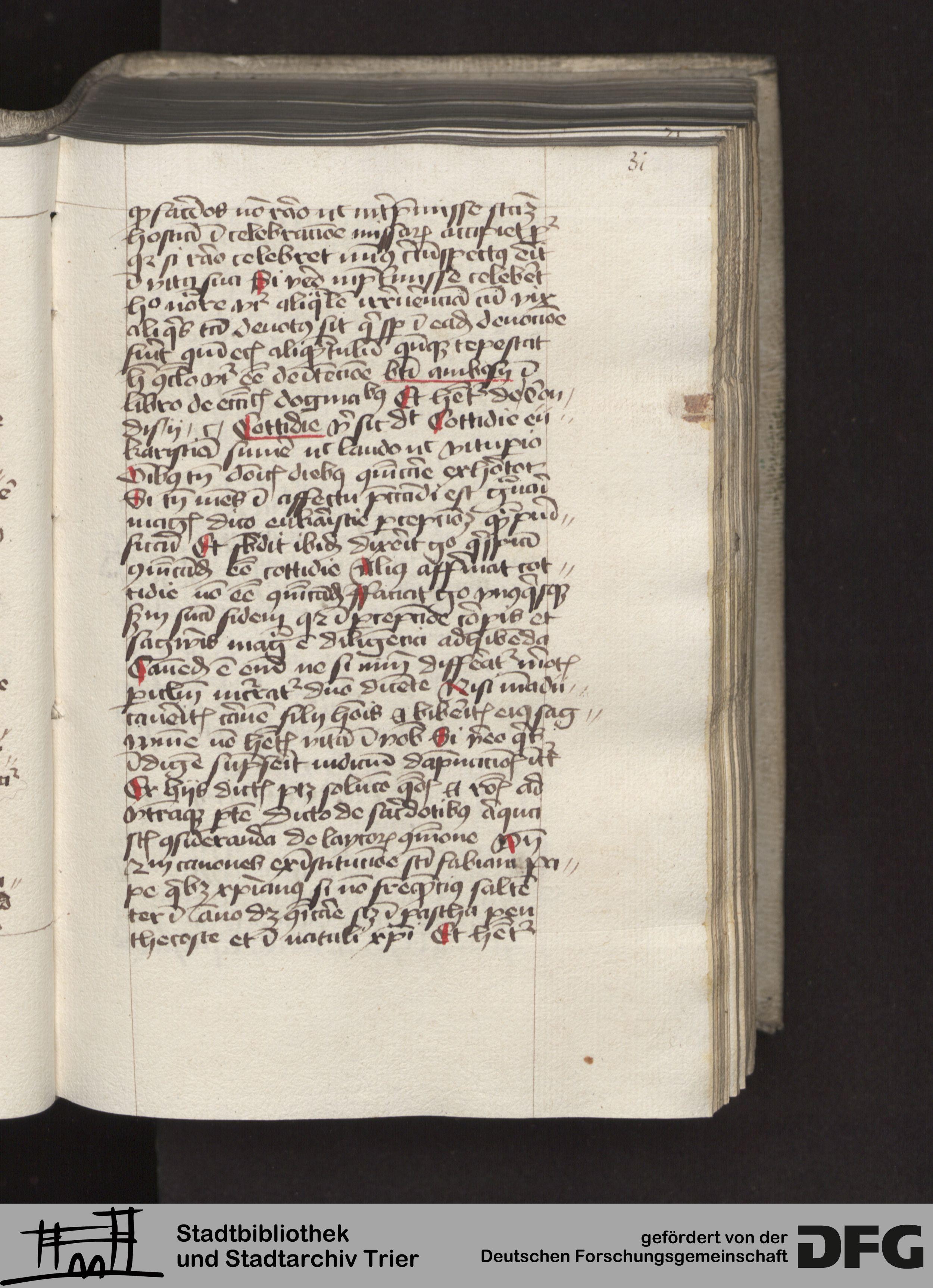 - TextGrid Repository (2017). Stadtbibliothek und Stadtarchiv Trier, Hs. 677/840 8°: Sammelhandschrift. Inhalte. Stadtbibliothek und Stadtarchiv Trier Hs 677/840 8°. Expositio missae. Blatt 31r. Blatt 31r. Virtuelles Skriptorium St. Matthias. Stadtbibliothek und Stadtarchiv Trier. https://hdl.handle.net/11378/0000-0009-7DDF-1
