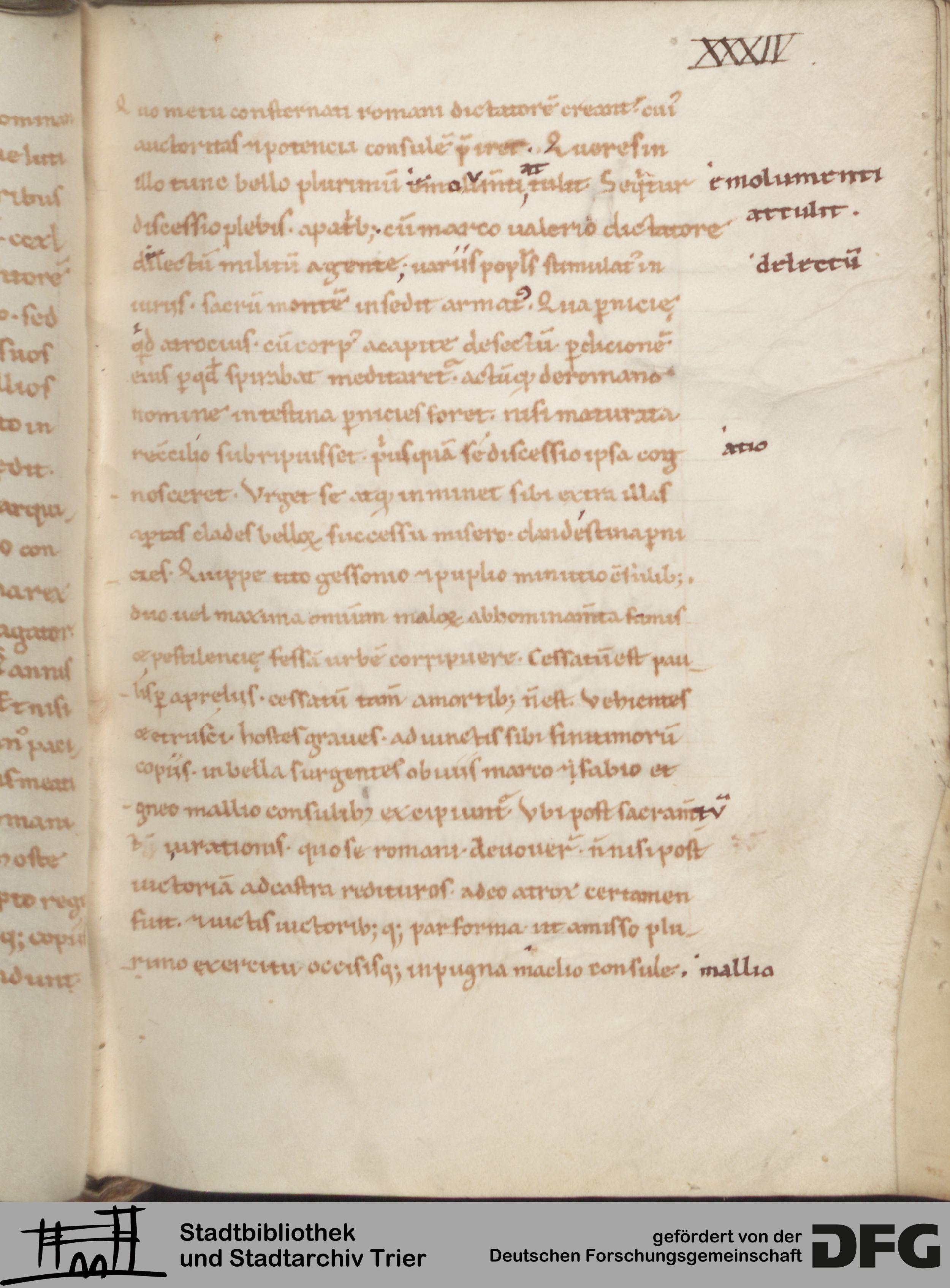 - TextGrid Repository (2017). Stadtbibliothek und Stadtarchiv Trier, Hs. 1095/27 8°: Historiarum adversum paganos libri VII. Inhalte. Stadtbibliothek und Stadtarchiv Trier Hs. 1095/27 8°. Orosius, Historiarum adversum paganos libri VII. Blatt 34r. Blatt 34r. Virtuelles Skriptorium St. Matthias. Stadtbibliothek und Stadtarchiv Trier. https://hdl.handle.net/11378/0000-000A-686B-A