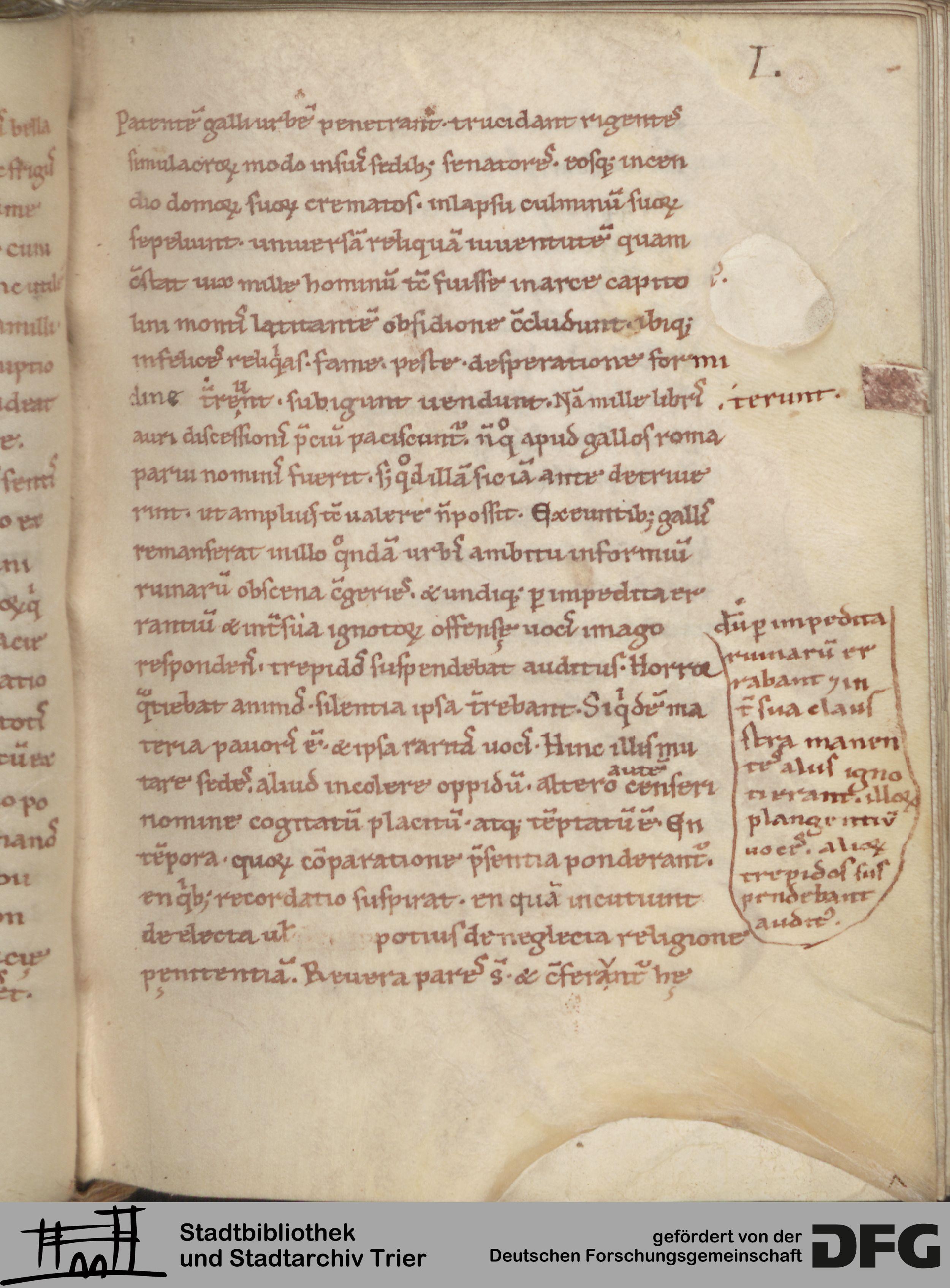 - TextGrid Repository (2017). Stadtbibliothek und Stadtarchiv Trier, Hs. 1095/27 8°: Historiarum adversum paganos libri VII. Inhalte. Stadtbibliothek und Stadtarchiv Trier Hs. 1095/27 8°. Orosius, Historiarum adversum paganos libri VII. Blatt 50r. Blatt 50r. Virtuelles Skriptorium St. Matthias. Stadtbibliothek und Stadtarchiv Trier. https://hdl.handle.net/11378/0000-000A-68AB-1