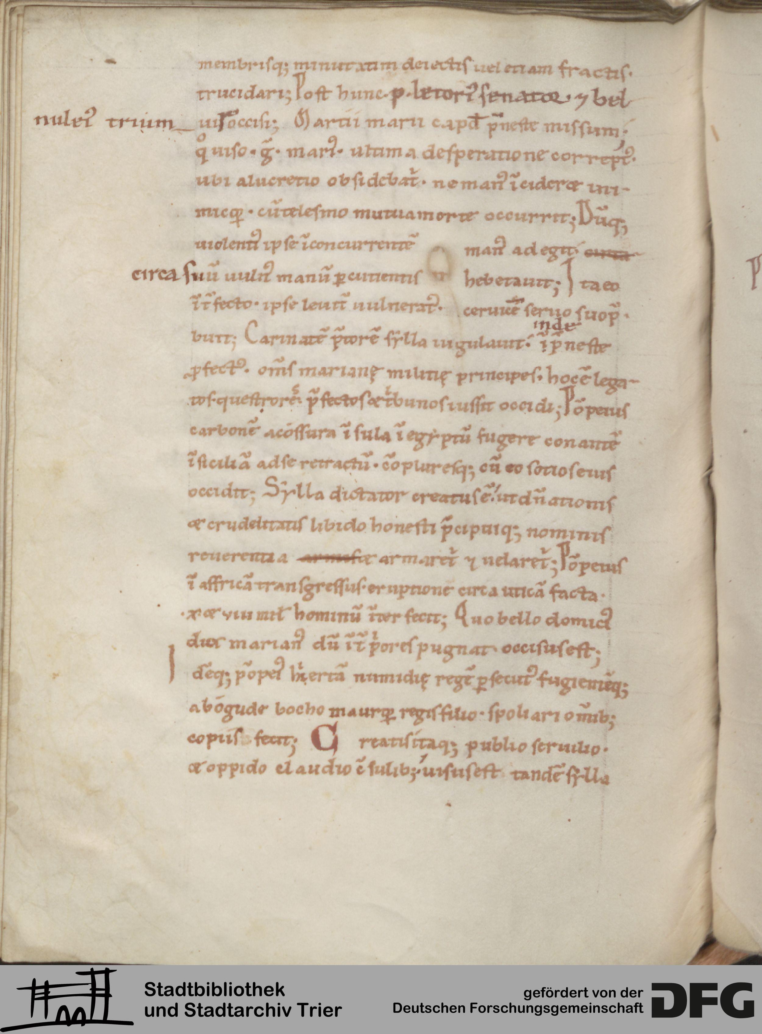 - TextGrid Repository (2017). Stadtbibliothek und Stadtarchiv Trier, Hs. 1095/27 8°: Historiarum adversum paganos libri VII. Inhalte. Stadtbibliothek und Stadtarchiv Trier Hs. 1095/27 8°. Orosius, Historiarum adversum paganos libri VII. Blatt 146v. Blatt 146v. Virtuelles Skriptorium St. Matthias. Stadtbibliothek und Stadtarchiv Trier. https://hdl.handle.net/11378/0000-000A-6A2D-E