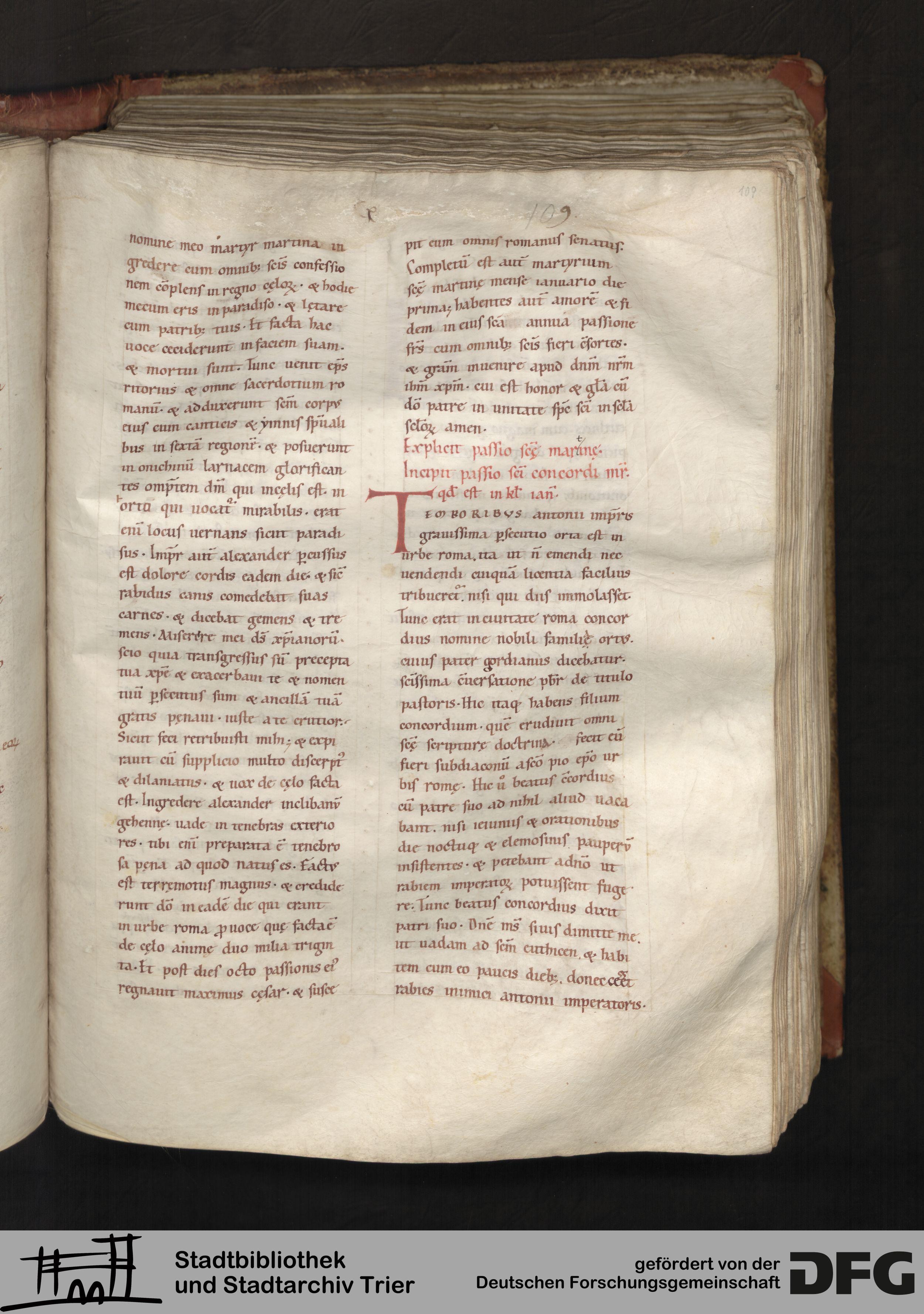 TextGrid Repository (2017). Stadtbibliothek und Stadtarchiv Trier, Hs. 1152/776 2°: Passionale der Monate Dez.-März; Erwähnung Trierer Heiliger. Inhalte. Stadtbibliothek und Stadtarchiv Trier Hs. 1152/776 2°. Passional. Blatt 109r. Blatt 109r. Virtuelles Skriptorium St. Matthias. Stadtbibliothek und Stadtarchiv Trier. https://hdl.handle.net/11378/0000-000A-9C13-1