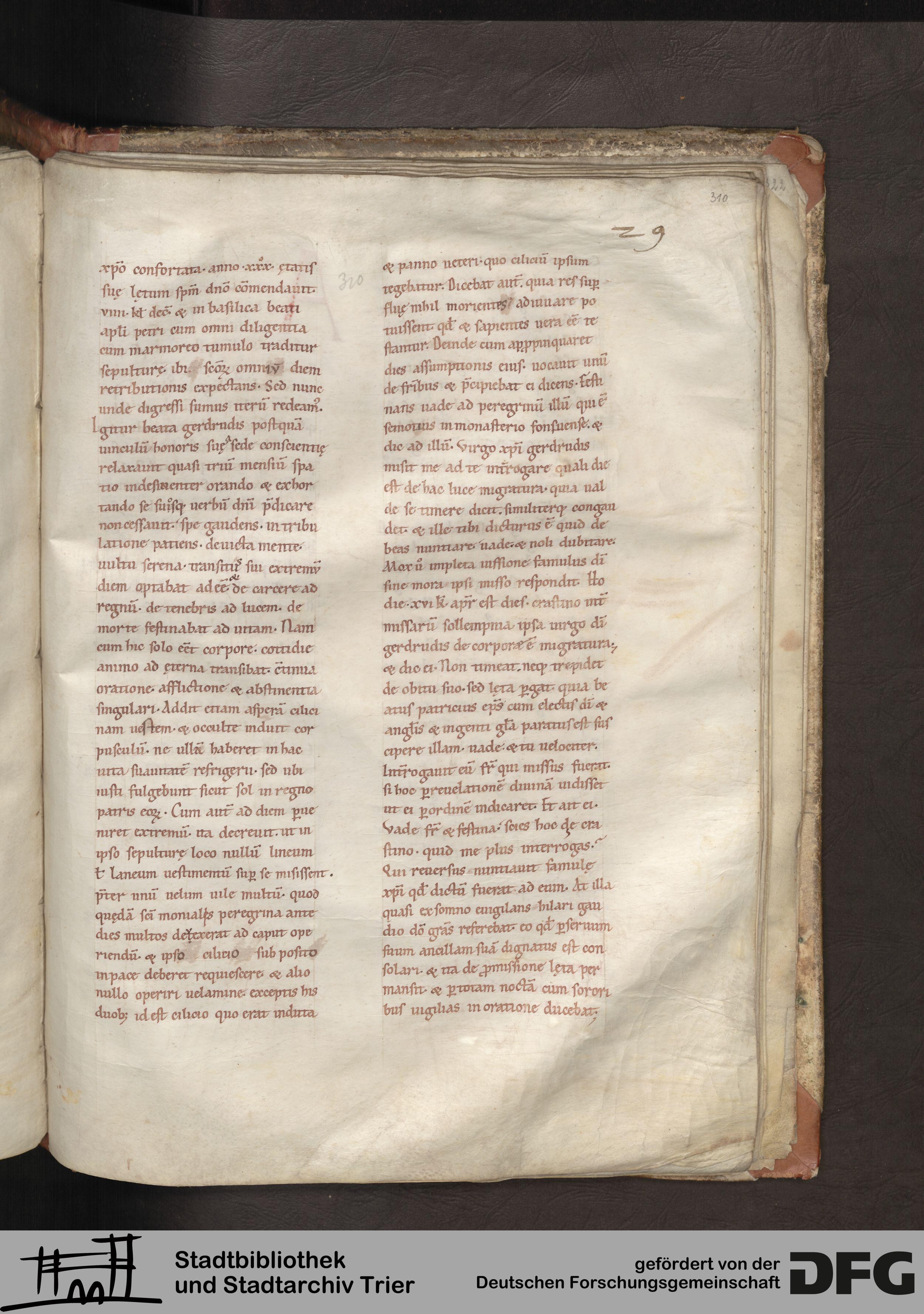 TextGrid Repository (2017). Stadtbibliothek und Stadtarchiv Trier, Hs. 1152/776 2°: Passionale der Monate Dez.-März; Erwähnung Trierer Heiliger. Inhalte. Stadtbibliothek und Stadtarchiv Trier Hs. 1152/776 2°. Passional. Blatt 310r. Blatt 310r. Virtuelles Skriptorium St. Matthias. Stadtbibliothek und Stadtarchiv Trier. https://hdl.handle.net/11378/0000-000A-9F37-6